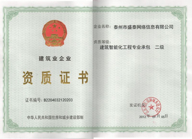 熱烈慶祝泰州市盛泰網(wǎng)絡(luò)信息有限公司建筑智能化專業(yè)承包資質(zhì)(二級)申請并獲得通過。這標(biāo)志著我公司未來將在建筑智能化領(lǐng)域邁開嶄新的一步!同時(shí)也預(yù)祝公司在未來有更大更快更好的發(fā)展!...