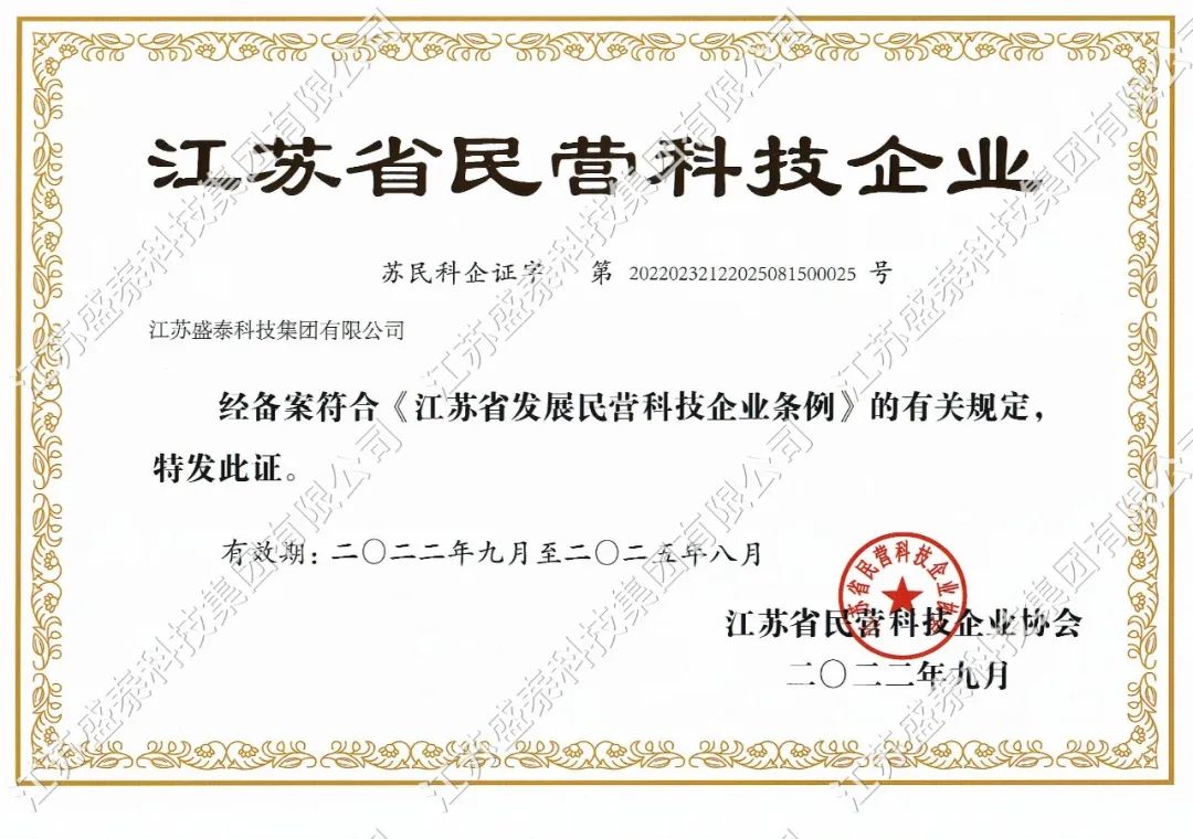 喜報(bào) | 盛泰科技榮獲“江蘇省民營(yíng)科技企業(yè)”稱號(hào)!